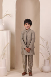 Fabric Details- Linen jodhpuri, chanderi silk kurta and pajama, lining in mal cotton fabric.