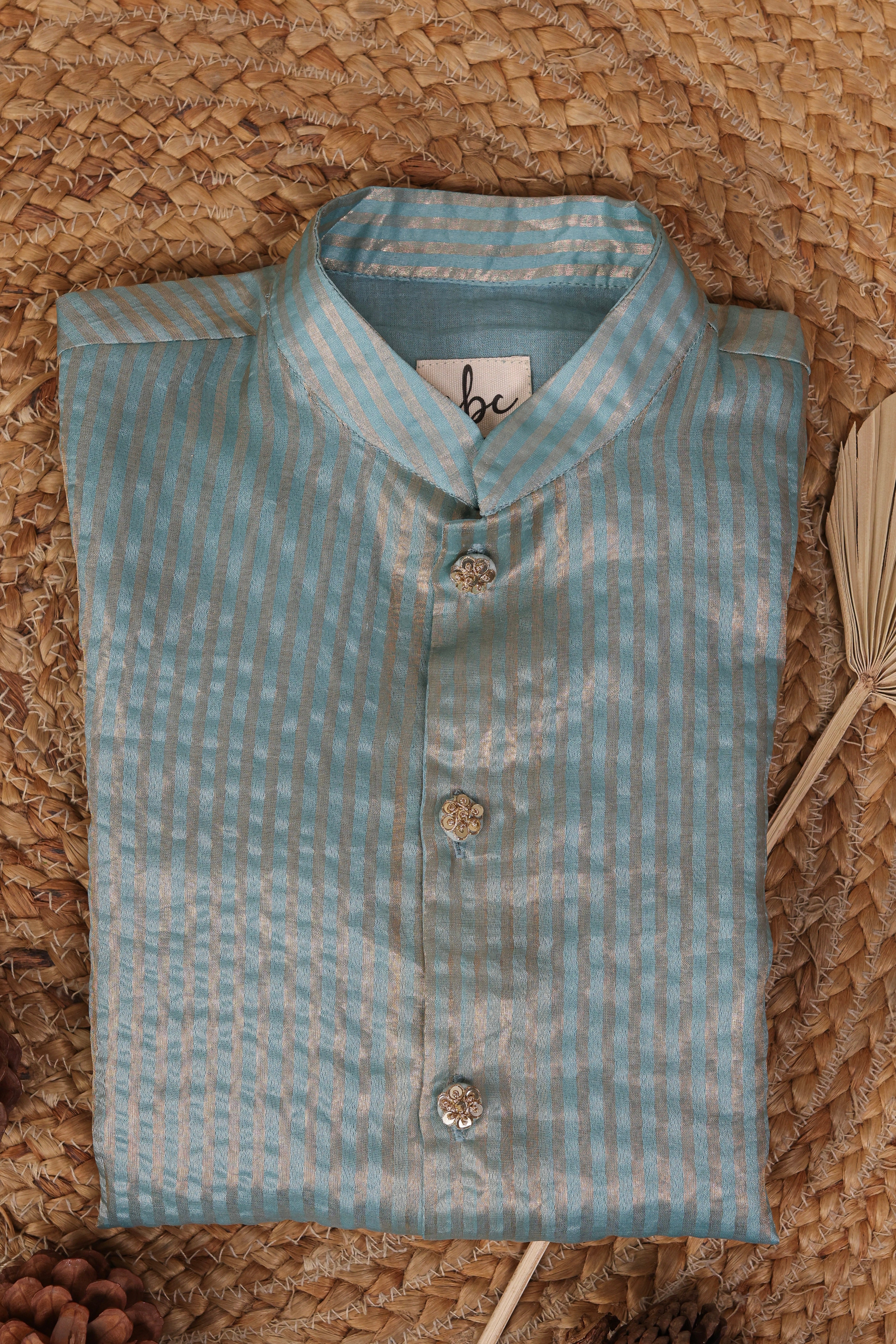 Delicate zari stripes add a refined shimmer to this airy Chanderi kurta, paired seamlessly with a tonal pajama — a graceful pick for day-to-evening wear.
