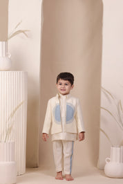 Fabric Details- Matka fabric jacket, chanderi silk kurta and pajama, lining in mal cotton fabric.